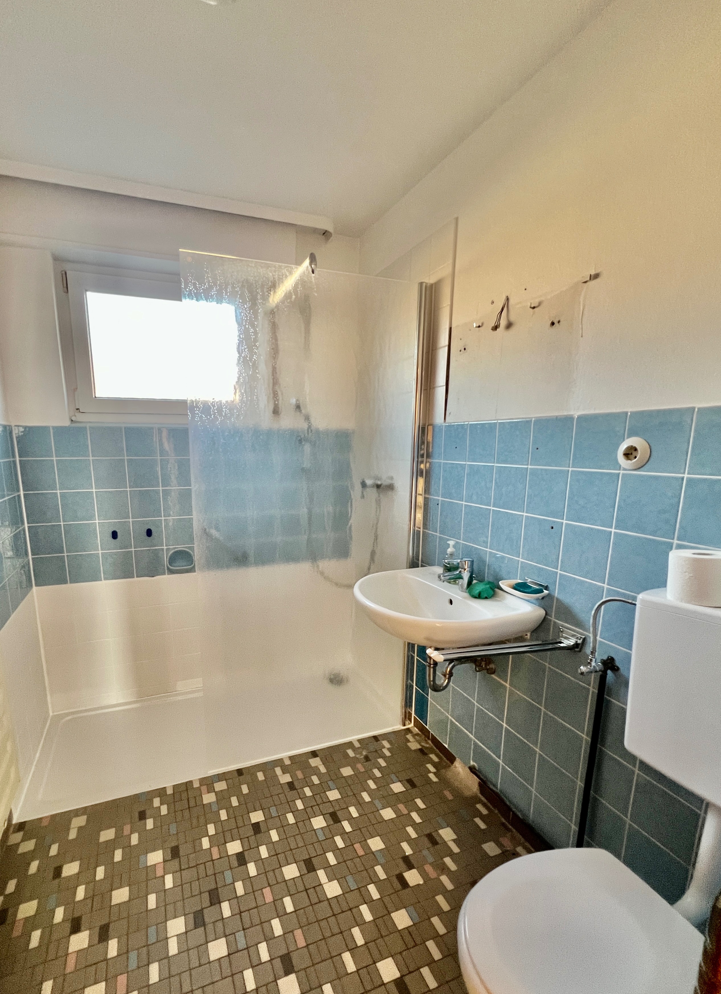 – aktuell zwei Wohnungen mit drei bis vier Zimmern, Küche, Bad, WC