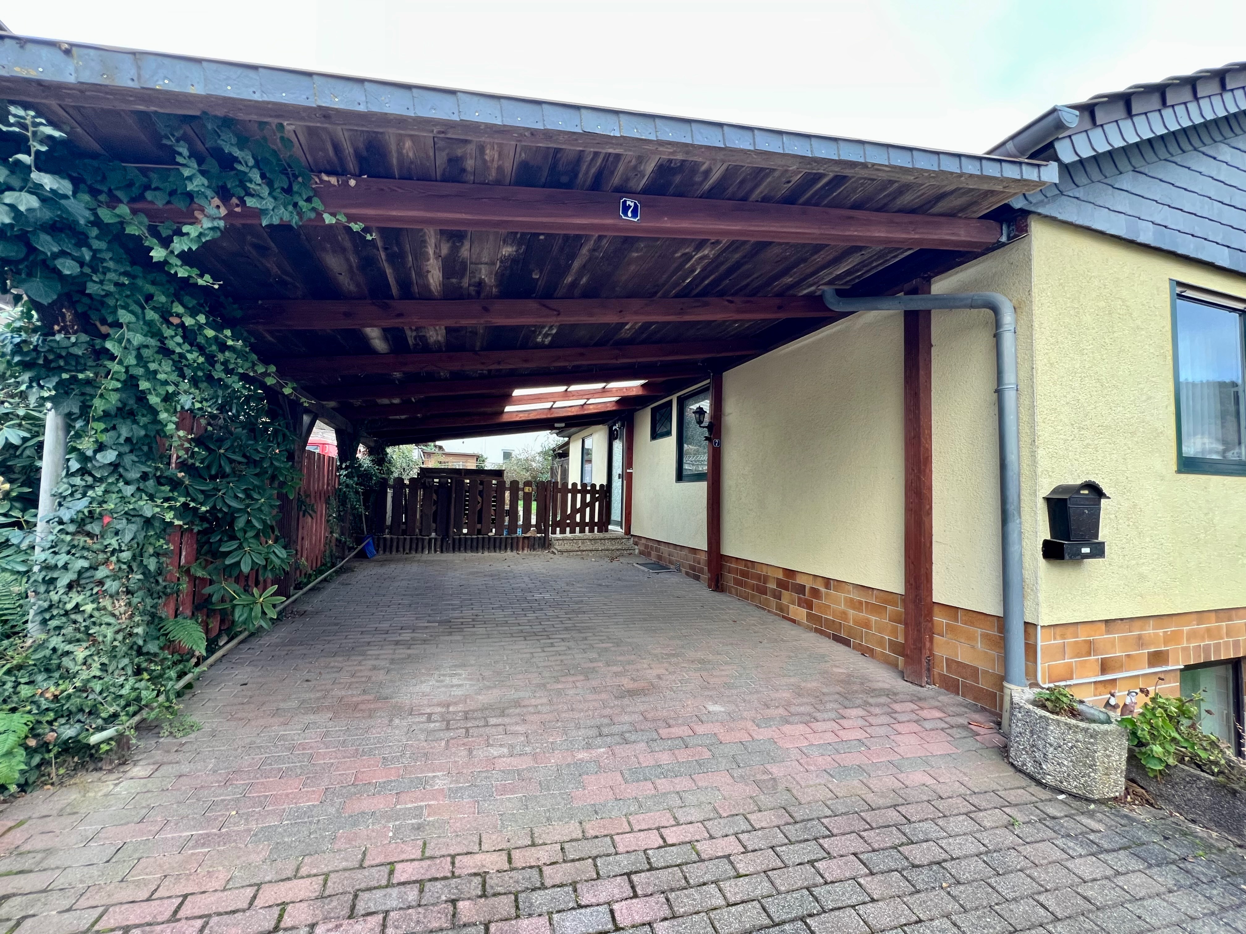 – praktischer Carport für zwei Autos mit Zugang zum Garten
