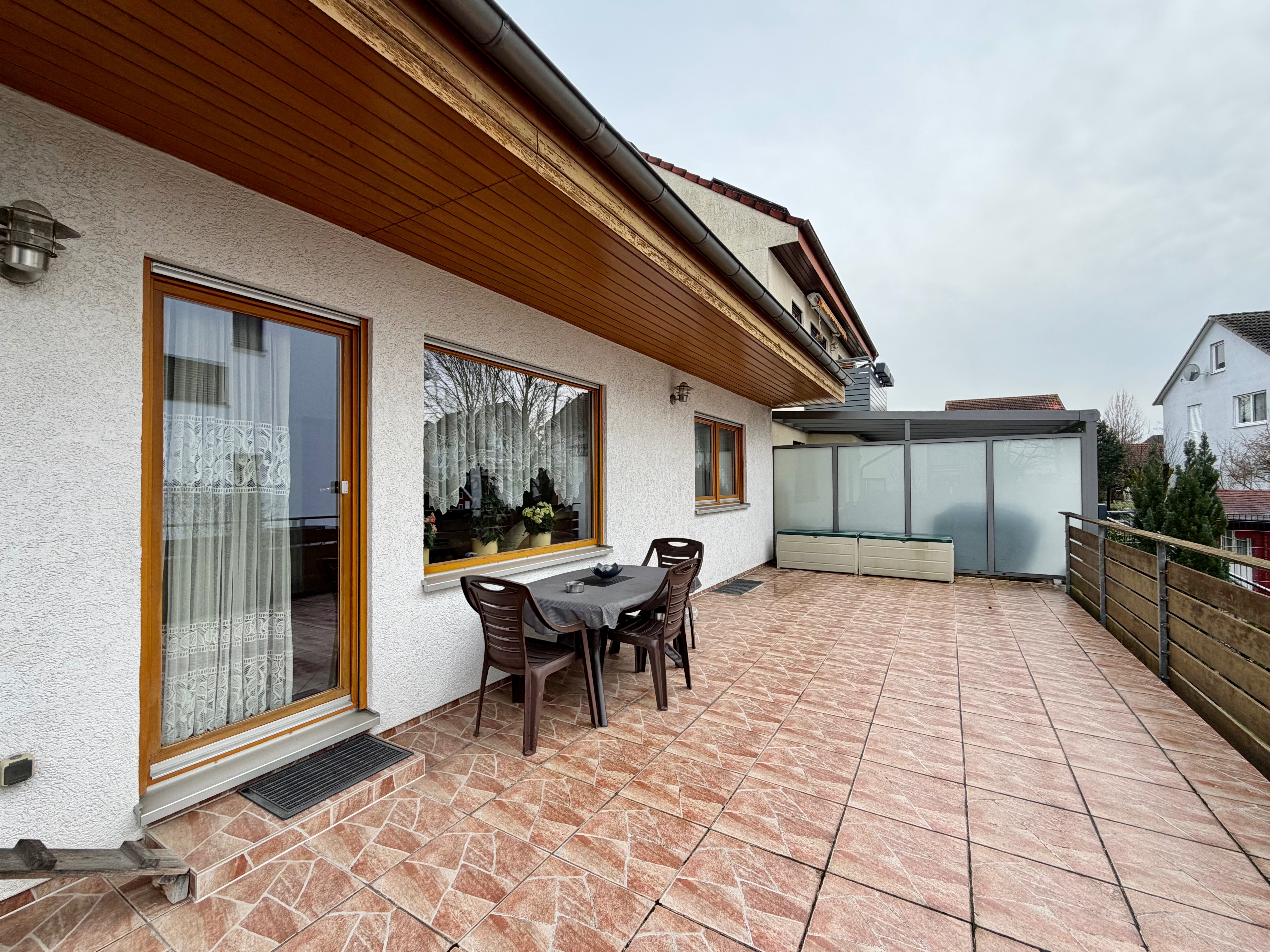 – helles Wohn-Esszimmer mit angeschlossener Terrasse