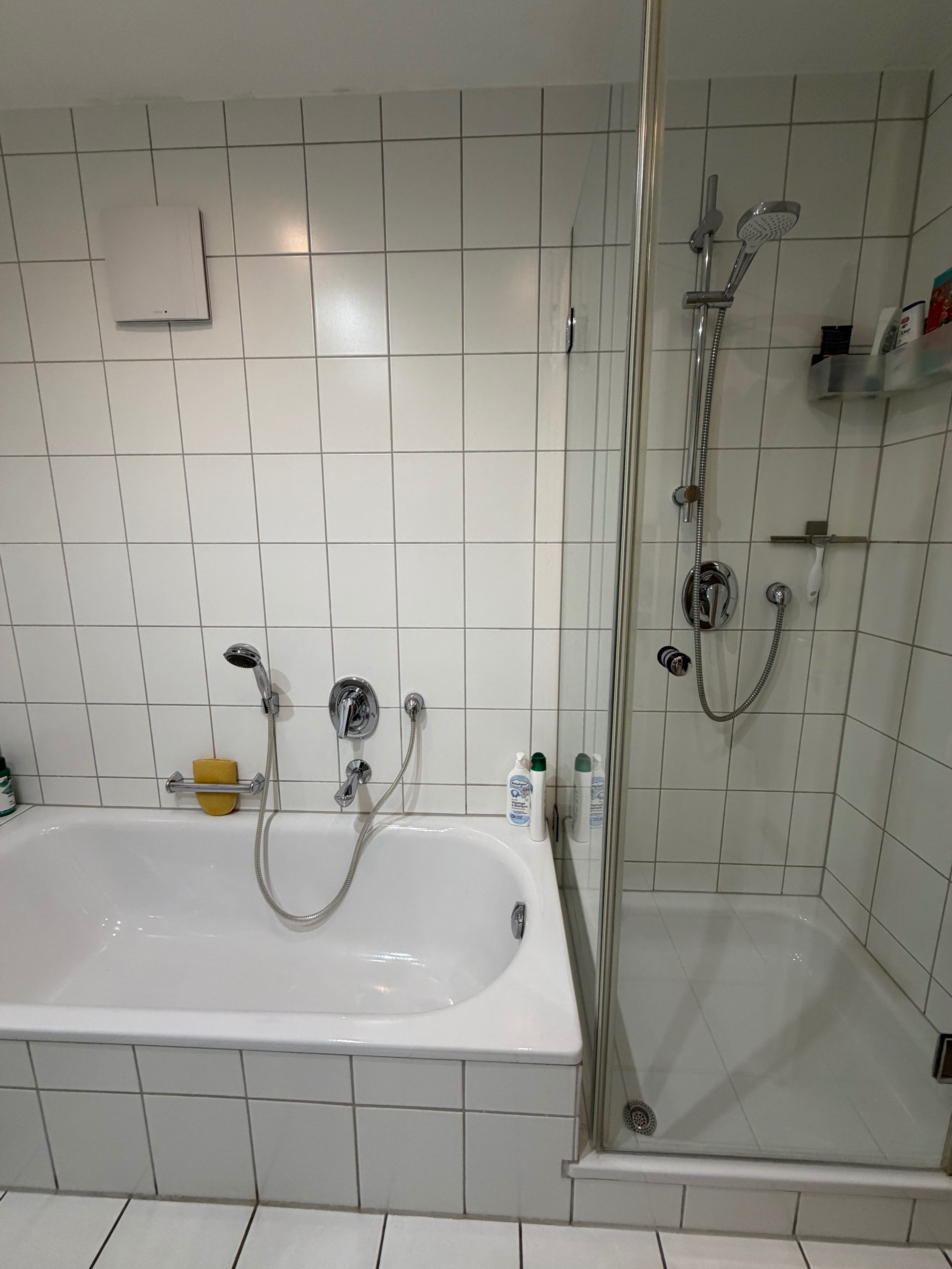 Bad: Bidet, Waschbecken, WC, Dusche, Badewanne