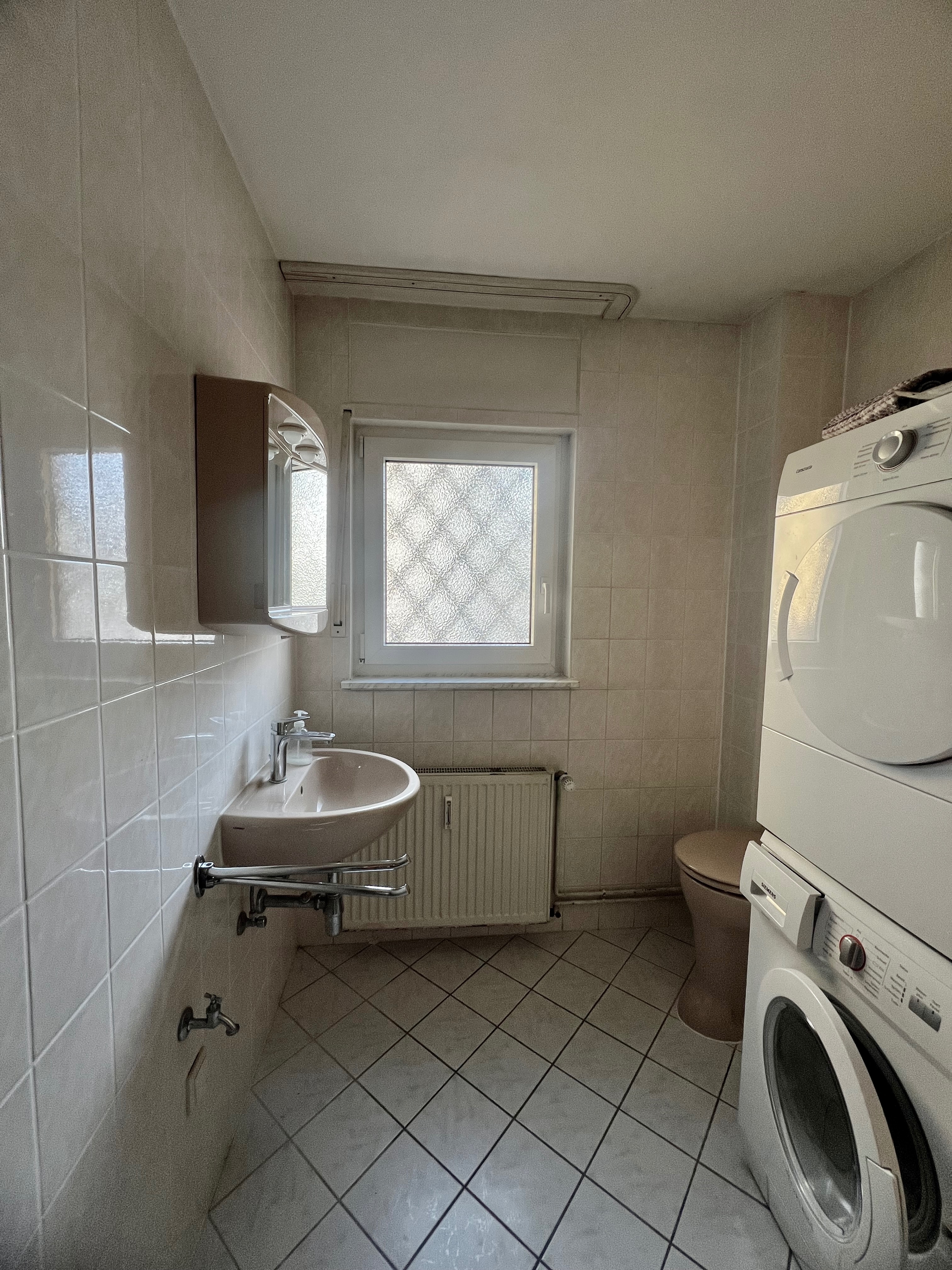 EG: Waschbecken, WC, Dusche und Waschmaschinenanschluss