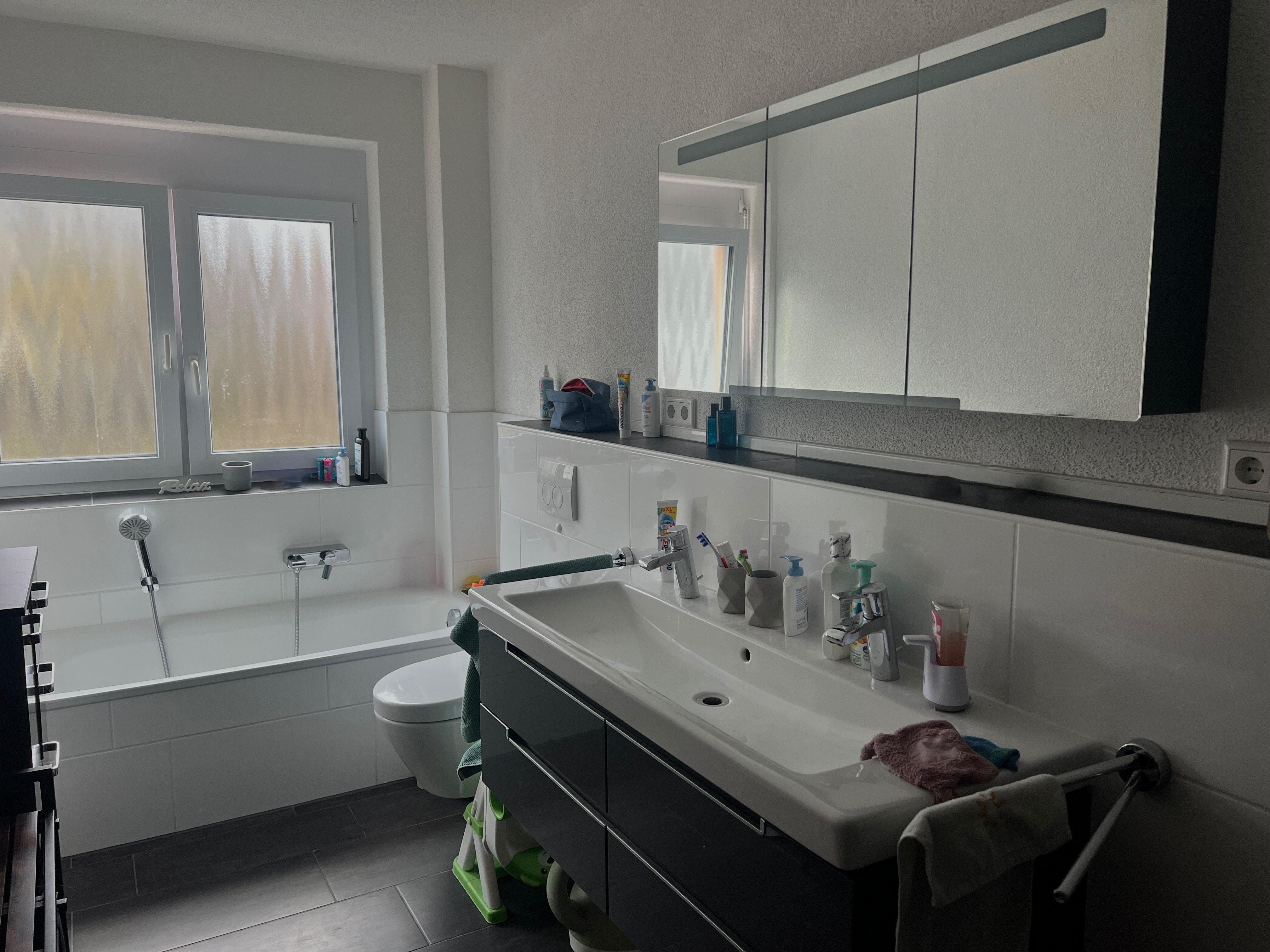 Das großzügige Tageslichtbad sowie ein zusätzliches Gäste-WC mit Dusche bieten hohen Wohnkomfort und Flexibilität.