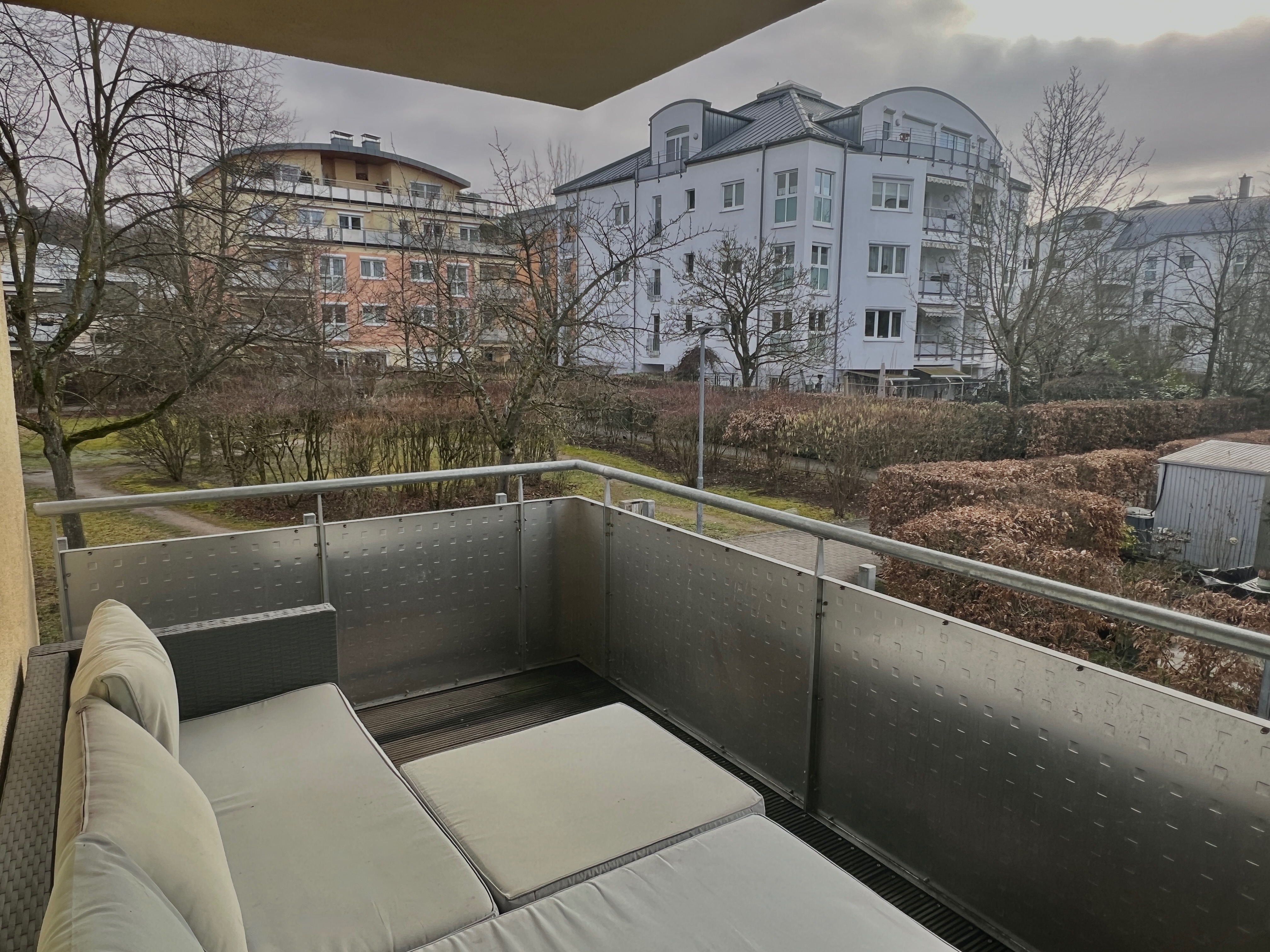 Der überdachte Südbalkon lädt zum Entspannen ein und bietet sonnige Stunden mit geschütztem Außenbereich.