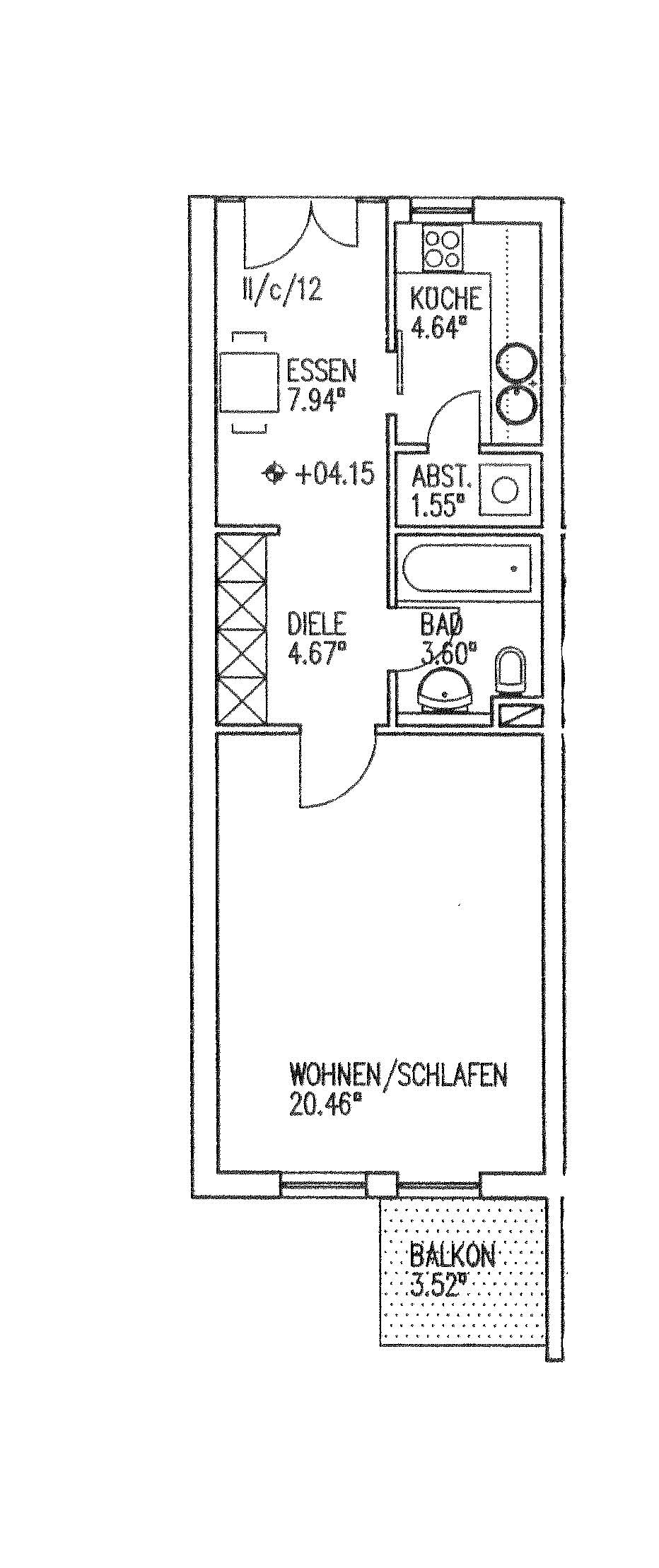 San. Einrichtung: Bad: Waschbecken, WC, Dusche, Waschmaschinenanschluss