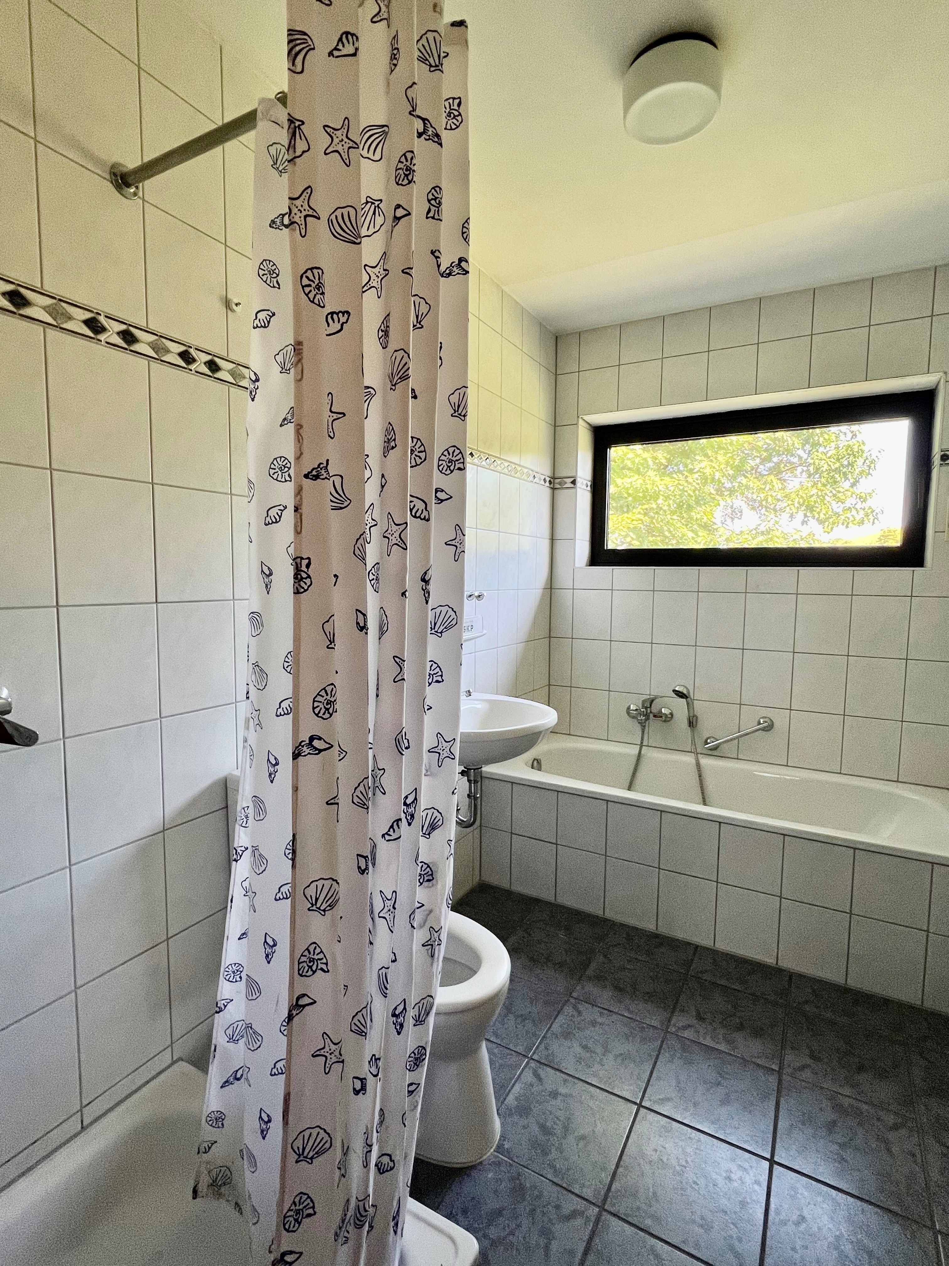Wannenbad EG: Waschbecken, WC, Dusche und Badewanne