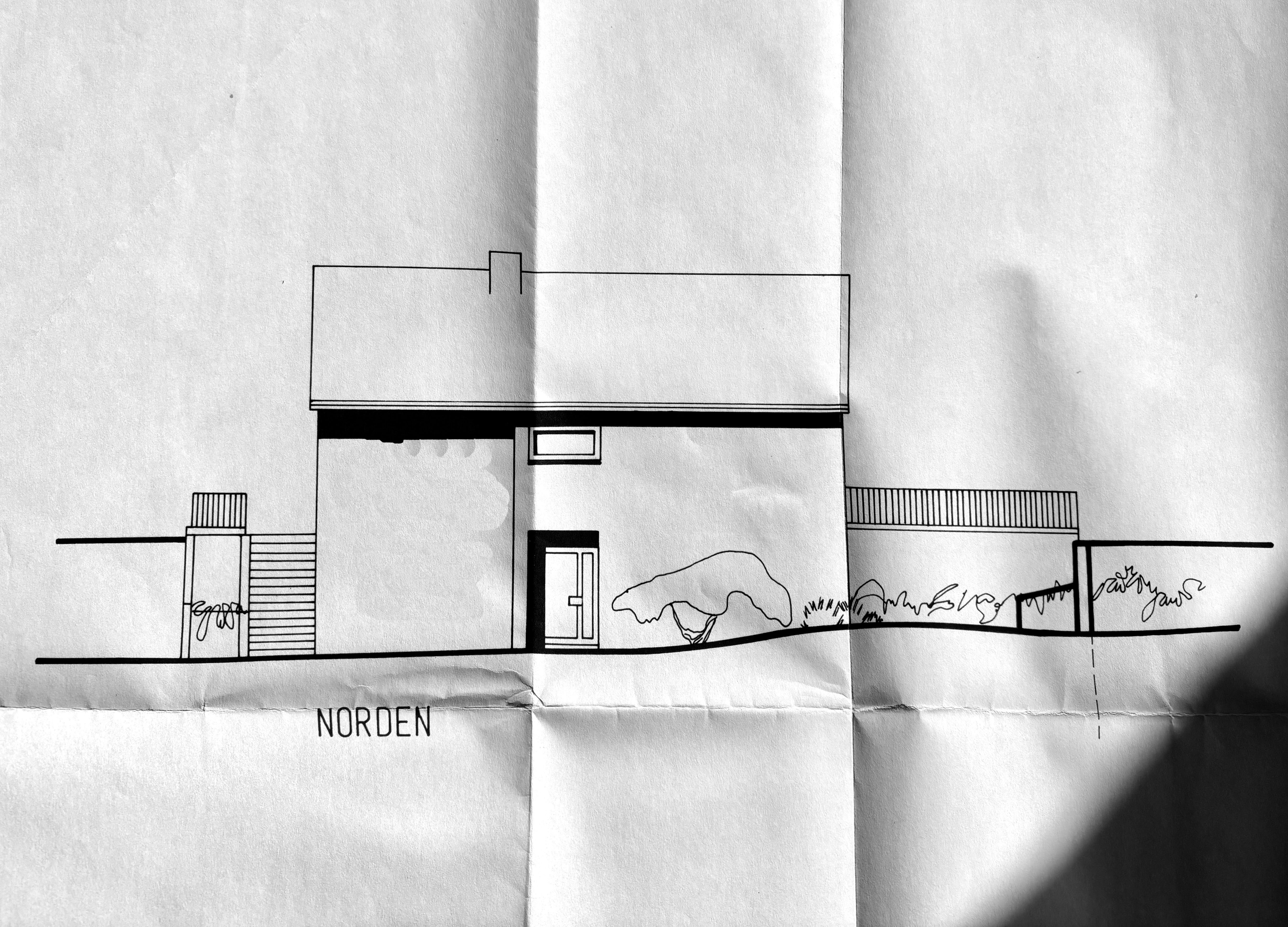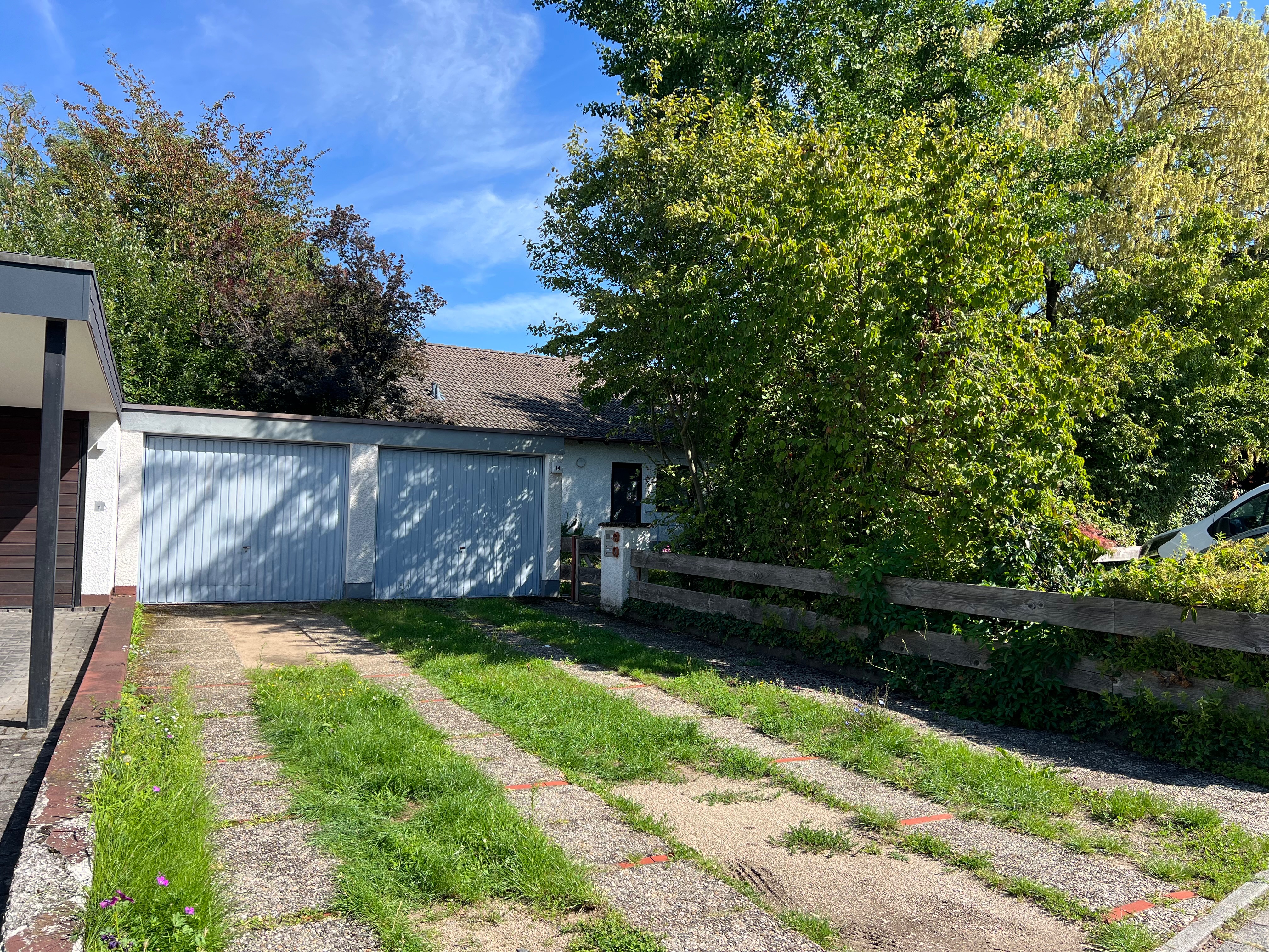 – Doppelgarage zur Straße mit davorliegenden Stellplätzen