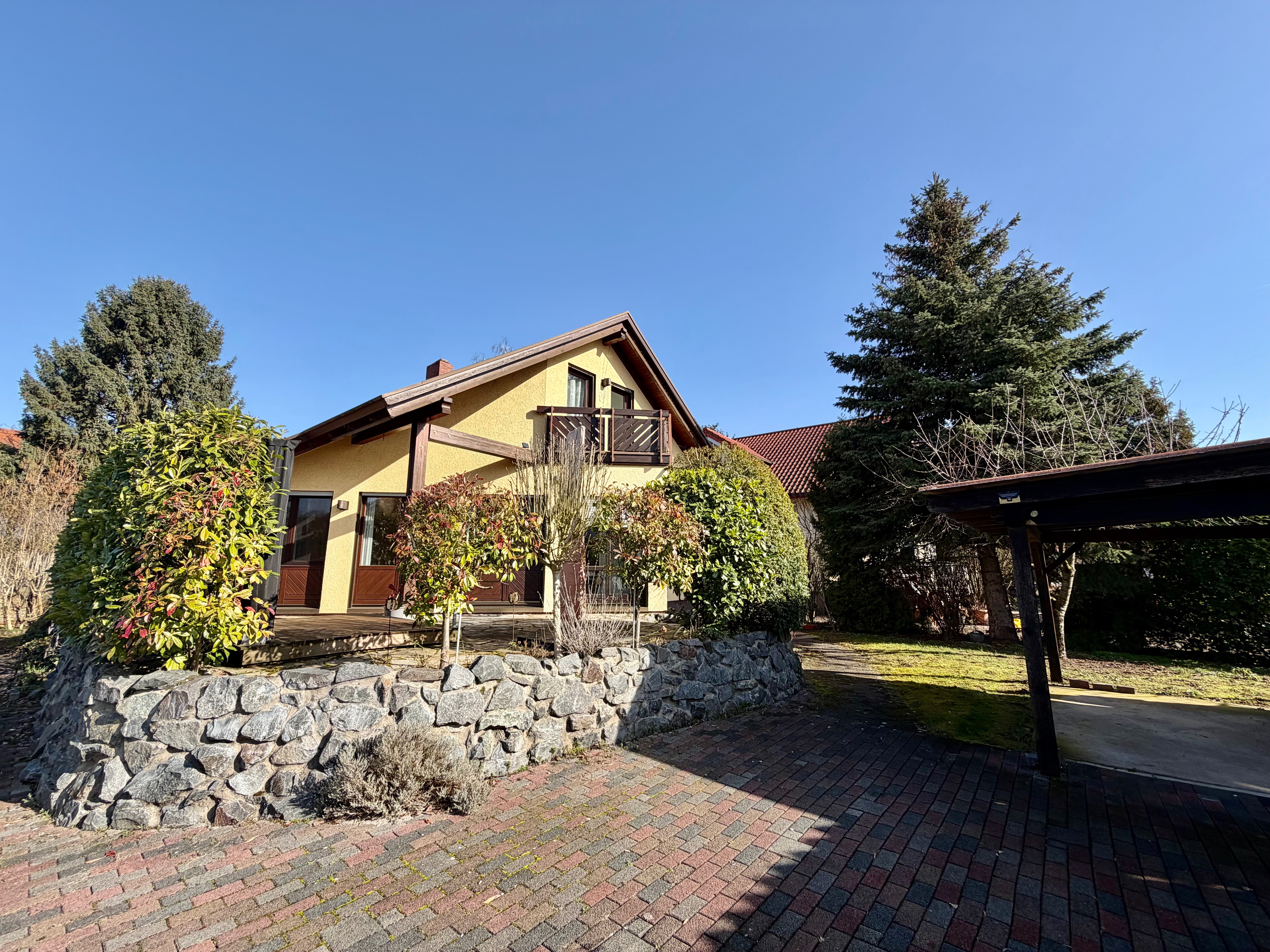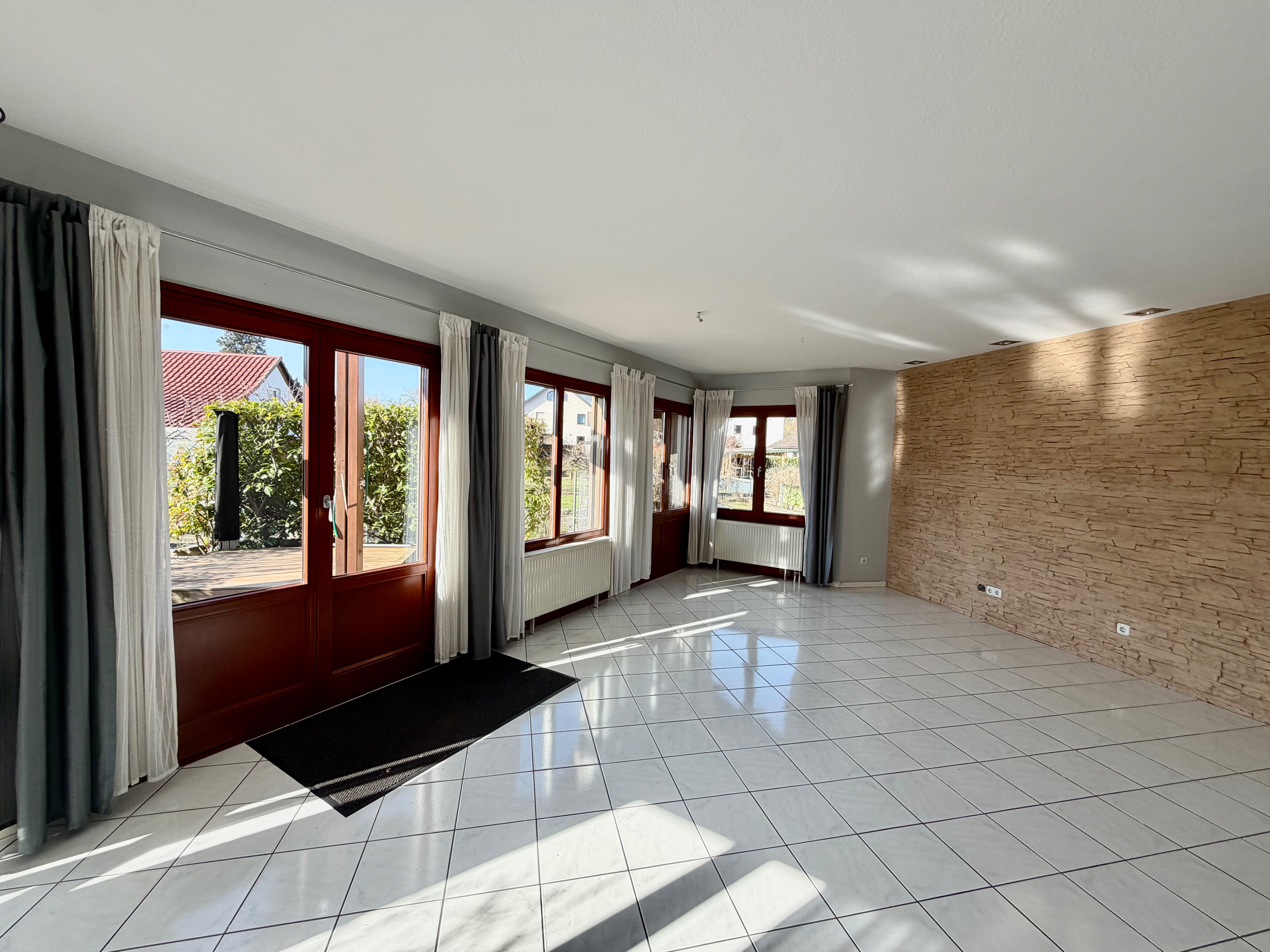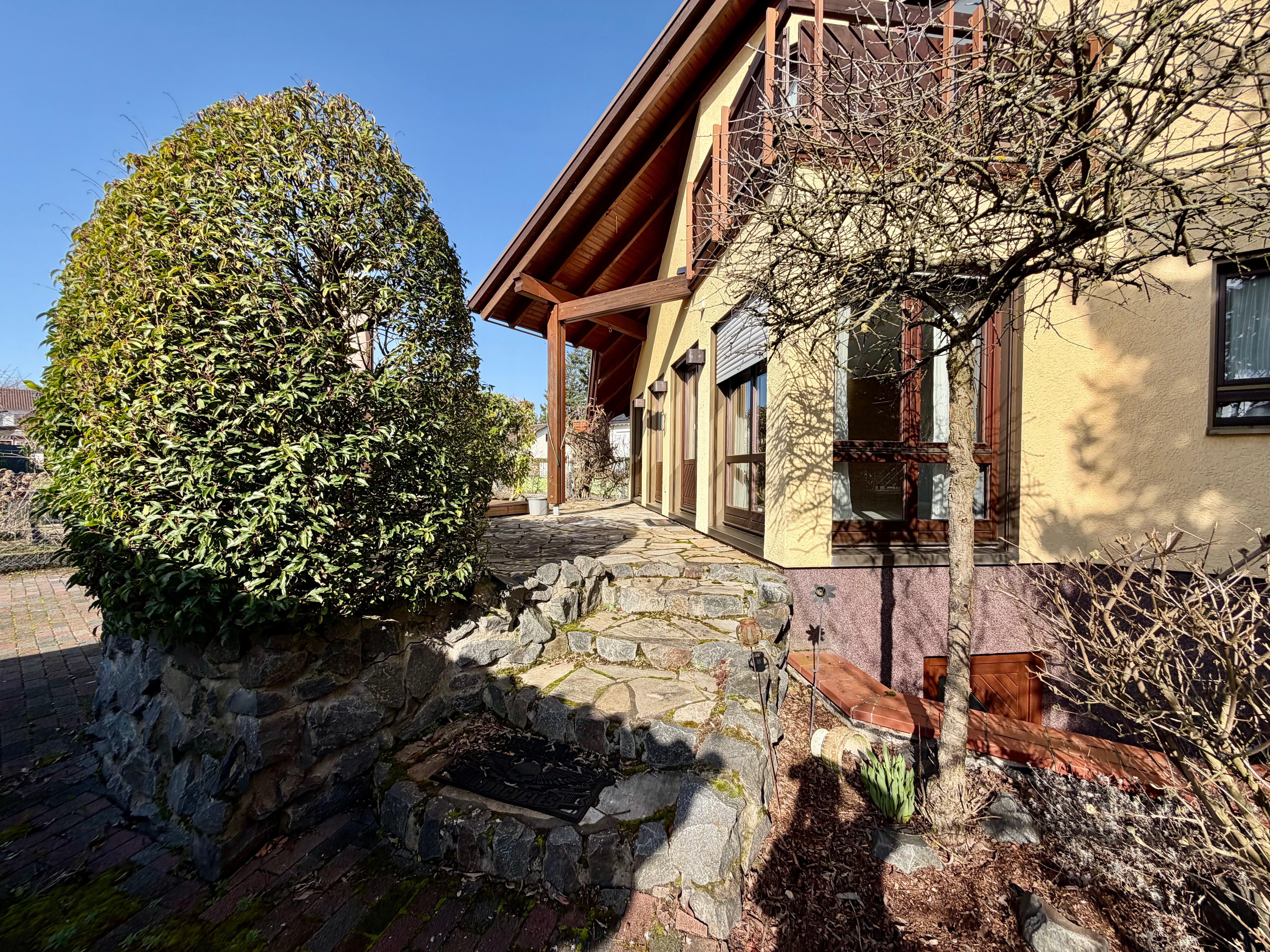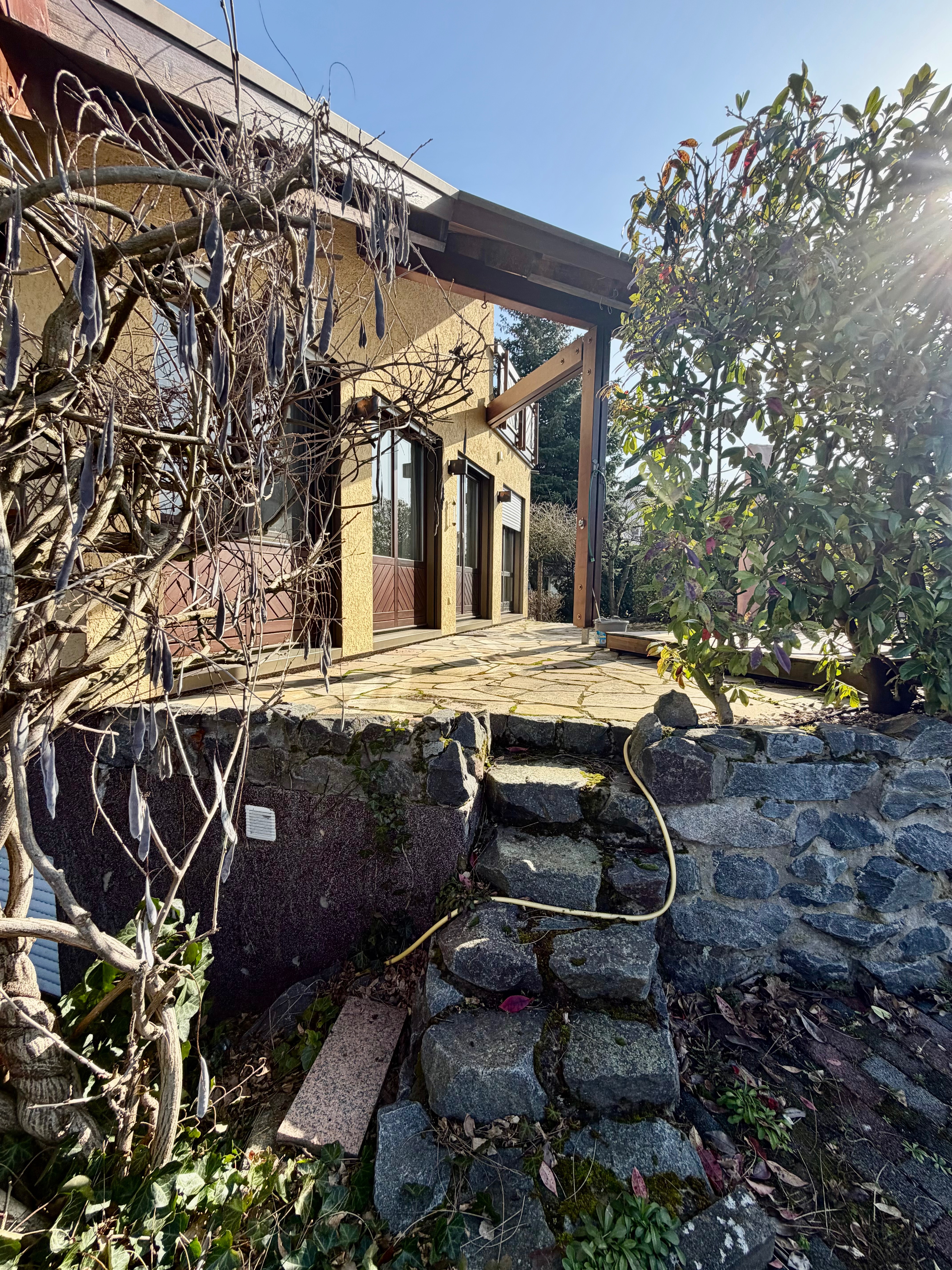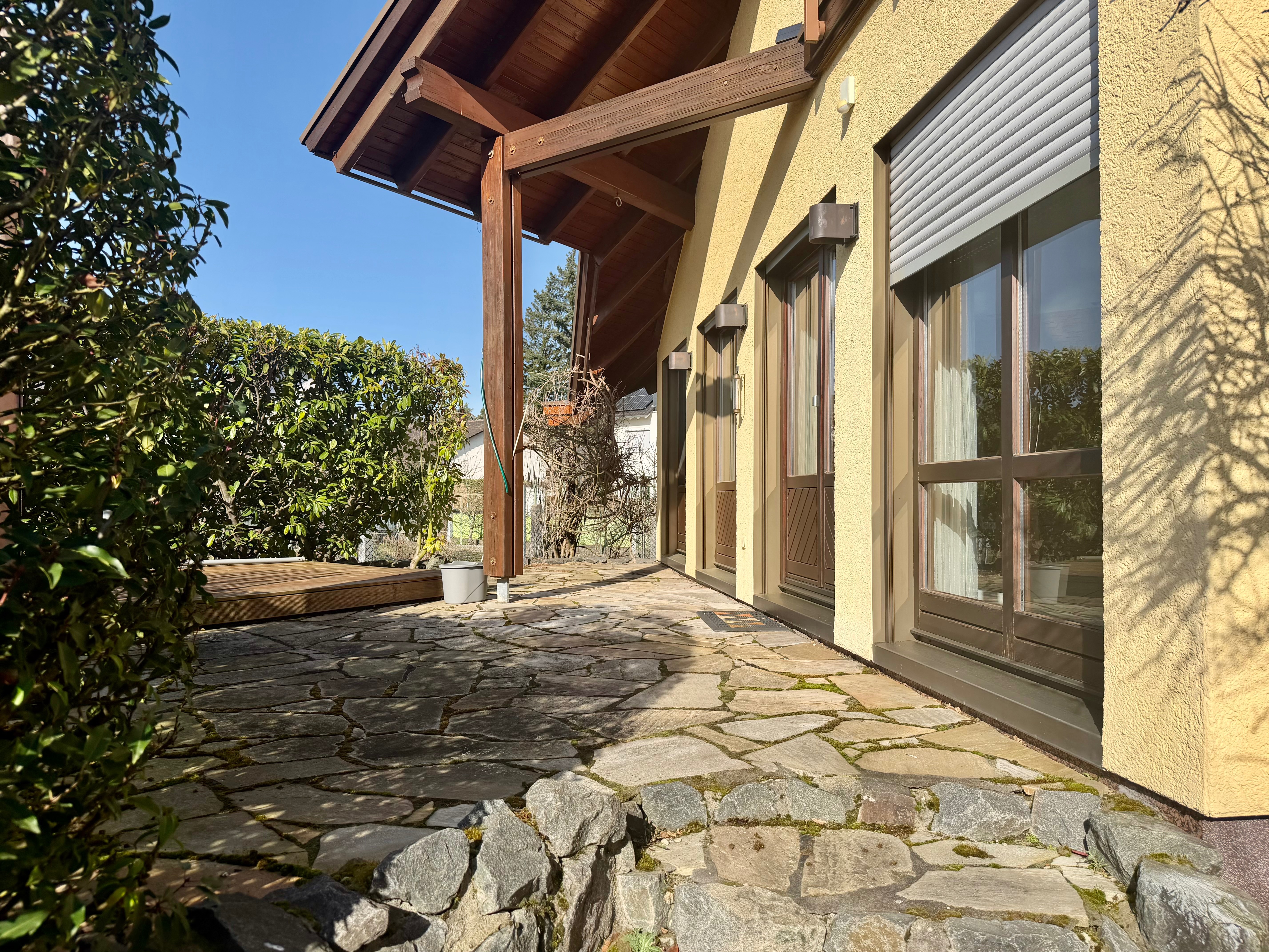 – sonnige Terrasse in Natursteineinfassung am Wohnzimmer angeschlossen