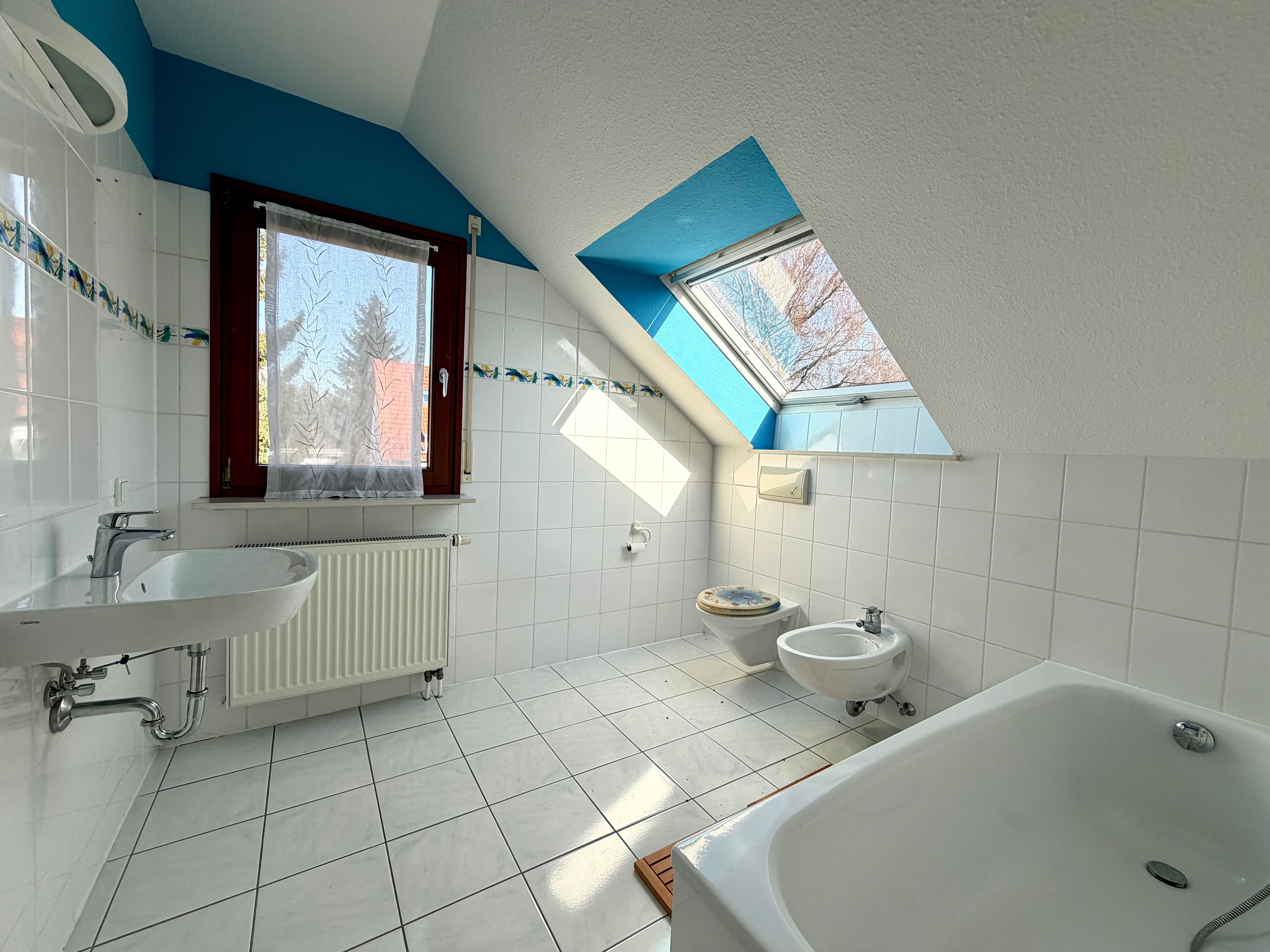 Bad DG: Waschbecken, WC, Bidet und Badewanne